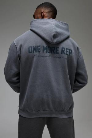 Man Active Oversize Hoodie mit One More Rep Print - Grau - S, Grau