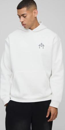 Oversize Hoodie mit Kreuz-Print - Weiß - L, Weiß