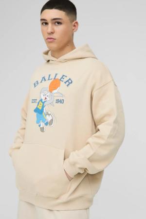 Oversize Hoodie mit lizenziertem Bugs Bunny Print - Beige - S, Beige