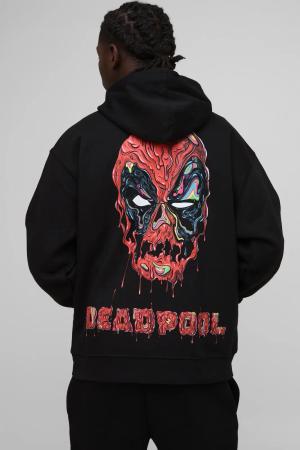 Oversize Hoodie mit lizenziertem Marvel Deadpool Print - Schwarz - XS, Schwarz