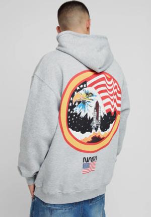Oversize Hoodie mit lizenziertem Nasa-Print - Grau - XS, Grau