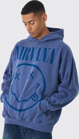 Oversize Hoodie mit Nirvana-Waschung und lizenziertem Print - Blau - S, Blau