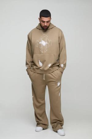 Plus lockerer Oversize Man Trainingsanzug mit Farbspritzern und Kapuze - Taupe - XXXXL, Taupe