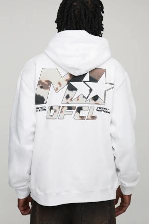 Tall Oversized M-Star Cow Print Hoodie - Weiß - 2XL, Weiß