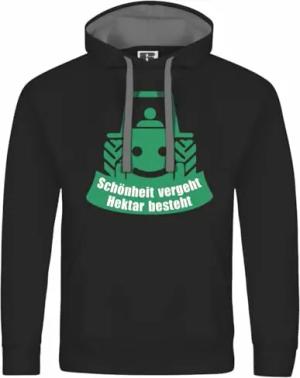Herren Kapuzenpullover mit Aufdruck Schönheit vergeht Hektar besteht - Bauer Traktor, Größe:XXL, Farbe:schwarz/graue Kapuze