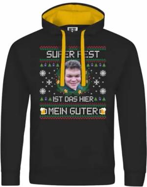 Herren Kapuzenpullover mit Aufdruck SUPER FEST ist das Hier Mein Guter - Humorvoll Statement, Größe:S, Farbe:schwarz/gelbe Kapuze
