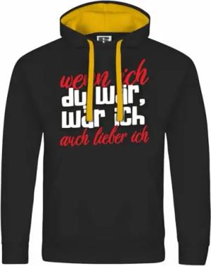 Herren Kapuzenpullover mit Aufdruck Wenn ich du wär wär ich auch Lieber ich - Humorvoll Statement, Größe:S, Farbe:schwarz/gelbe Kapuze