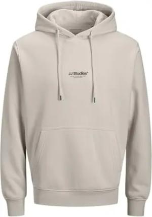 Hoodie Herren Regular Fit JJEADRIAN Kapuzenpullover Pullover Sweater Print Beige M, Größe:M, Farbe:Crockery
