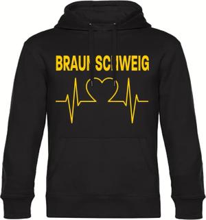 Kapuzen Sweatshirt - Braunschweig - Herzschlag - Druck gelb - Hoodie