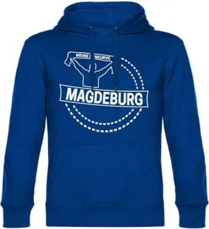 Kapuzen Sweatshirt - Magdeburg - Meine Fankurve - Druck weiß - Hoodie Größe S blau