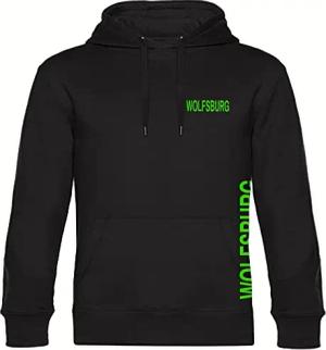 Kapuzen Sweatshirt - Wolfsburg - Brust & Seite - Druck grün - Hoodie Größe M schwarz
