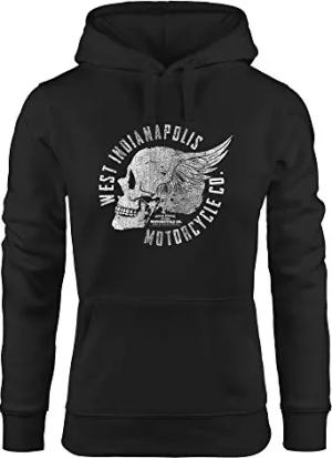 Cooler Damen Hoodie mit Totenkopf Flügel, Motorrad Biker Skull Wings Vintage, Sweatshirt Kapuze Kapuzenpullover Navy S