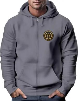 Herren Sweatjacke mit Kapuze Logo Bäume Wald Print Outdoor Motiv Zip Hoodie Männer Fashion Convoy Grey XS