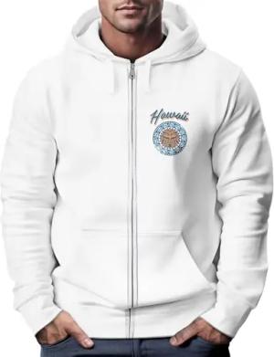 Herren Sweatjacke mit Kapuze Zip Hoodie Hawaii Print Tribal Zipjacke Männer Fashion Streetstyle weiß S