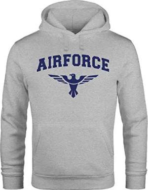Hoodie Herren Airforce US Army Adler Militär Print Aufdruck Kapuzen-Pullover Männer Fashion Streetstyle grau 5XL