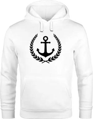 Hoodie Herren Anker Lorbeerkranz Aufdruck Print Kapuzen-Pullover Männer Fashion Streetstyle weiß S
