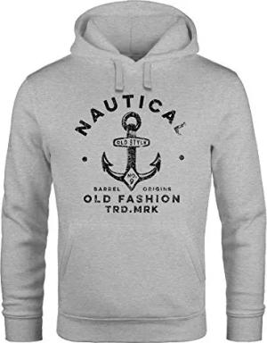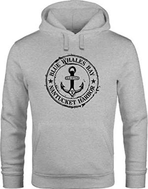 Hoodie Herren Anker Motiv Nautical Kapuzen-Pullover Männer Fashion Streetstyle grau XL