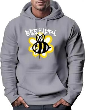 Hoodie Herren Aufdruck Bee Happy Biene Blume Graffiti Schriftzug Fashion Streetstyle Convoy Grey S