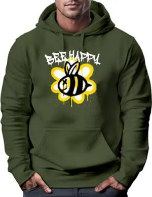 Hoodie Herren Aufdruck Bee Happy Biene Blume Graffiti Schriftzug Fashion Streetstyle Oliv XXL