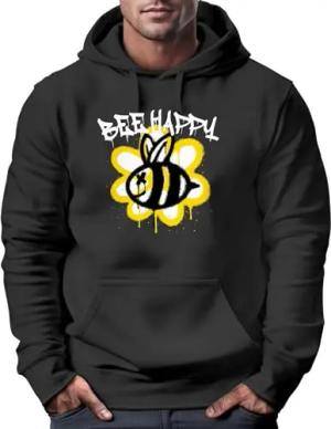 Hoodie Herren Aufdruck Bee Happy Biene Blume Graffiti Schriftzug Fashion Streetstyle schwarz S