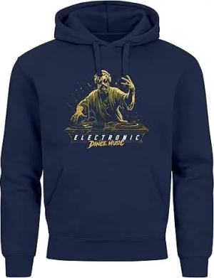 Hoodie Herren Aufdruck Eletronic Dance Music MichelangeloTechno DJ Fashion Streetstyle Navy L