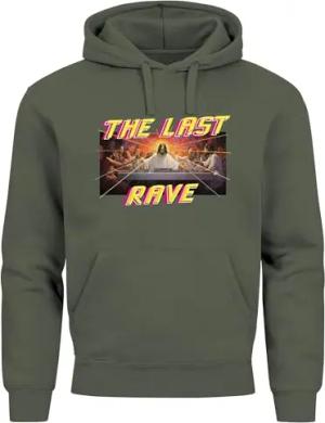 Hoodie Herren Aufdruck Techno The Last Rave Parodie Das letzte Abendmahl Jesus Fashion Streetstyle Oliv S