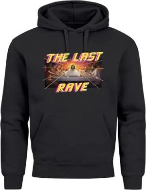 Hoodie Herren Aufdruck Techno The Last Rave Parodie Das letzte Abendmahl Jesus Fashion Streetstyle schwarz XL