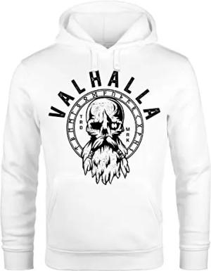 Hoodie Herren Aufdruck Valhalla Totenkopf Odin Runen Wikinger Print Kapuzen-Pullover Fashion weiß M