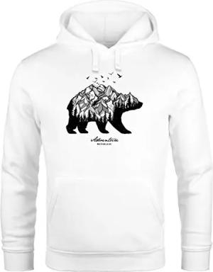 Hoodie Herren Bär Abenteuer Berge Wald Bear Mountains Adventure Kapuzen-Pullover Männer weiß M