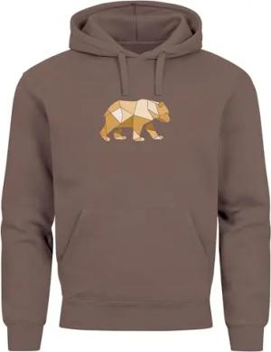 Hoodie Herren Bär Aufdruck Grafik Outdoor Polygon Motive Printshirt Natur Fashion Streetstyle Mocha XS