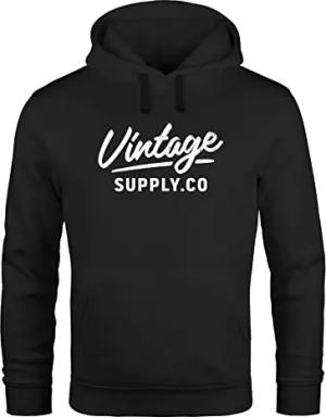 Hoodie Herren Bedruckt Vintage Schriftzug Retro Design Kapuzenpullover Aufdruck Fashion Streetstyle schwarz -Weiss XS