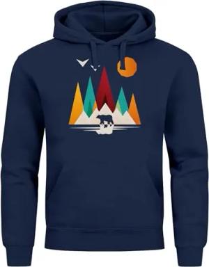 Hoodie Herren Berge Natur Outdoor Printshirt Aufdruck Wandern Männer Fashion Streetstyle Navy XXL