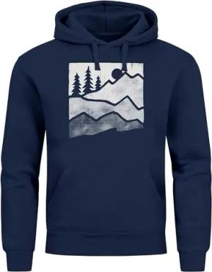 Hoodie Herren Print Logo Badge Landschaft Natur Berge Wandern Outdoor Fashion Navy L