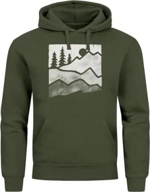 Hoodie Herren Berge Natur Outdoor Printshirt Aufdruck Wandern Männer Fashion Streetstyle Oliv XXL
