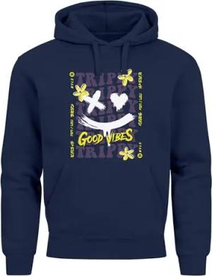 Hoodie Herren Drip Face Smile Good Vibes Herz Blumen Collage Fashion Streetstyle Techwear Navy-lila S