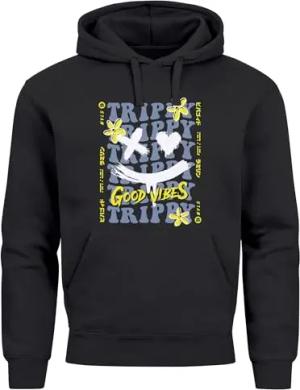 Hoodie Herren Drip Face Smile Good Vibes Herz Blumen Collage Fashion Streetstyle Techwear schwarz/blau 5XL