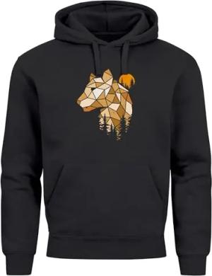Hoodie Herren Polygon Grafik Bär Outdoor Motive Print Natur Fashion schwarz 5XL