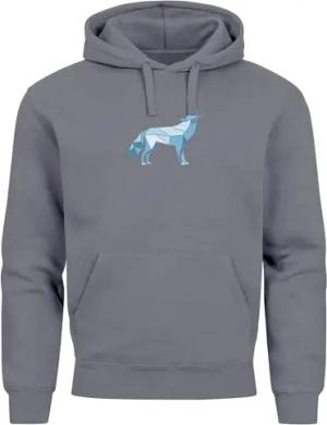 Hoodie Herren Polygon Print Wolf Wald Outdoor Adventure Natur Tiermotiv Fashion Streetstyle Convoy Grey XXL