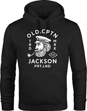 Hoodie Herren Kapitän Motiv Aufdruck Old Cptn Jackson Retro Print Kapuzen-Pullover Männer schwarz 5XL
