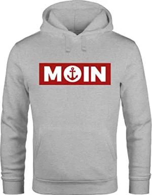 Hoodie Herren Moin norddeutsch Morgen Anker Kapuzen-Pullover Print Männer Fashion Streetstyle grau L