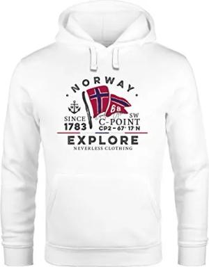 Hoodie Herren Norway Explore norwegische Flagge Norwegen Kapuzen-Pullover Männer weiß M
