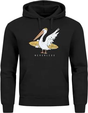 Hoodie Herren Pelikan Print Surfer Surfboard Kapuzen-Pullover Männer Fashion Streetstyle schwarz 4XL