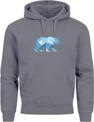 Hoodie Herren Polygon Grafik Bär Outdoor Fashion Tiermotiv Wandern Geometric Style Convoy Grey L