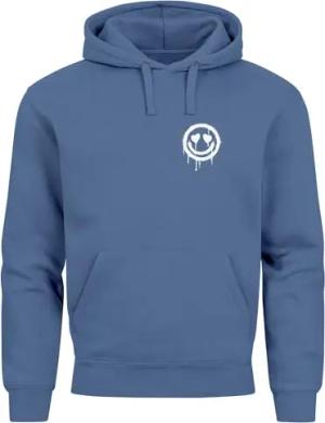 Hoodie Herren Print Aufdruck Motiv Drip Face Drippy Smile Herz-Augen Lächeln Graffiti Fashion Streetstyle Indigo Blue XL