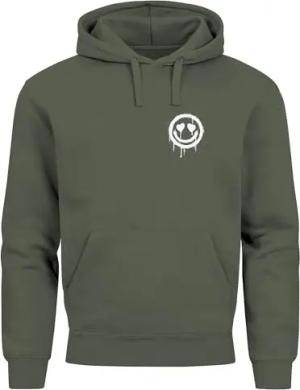 Hoodie Herren Print Aufdruck Motiv Drip Face Drippy Smile Herz-Augen Lächeln Graffiti Fashion Streetstyle Oliv M