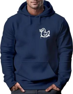 Hoodie Herren Print Aufdruck Motiv Kapuzen-Pullover Männer Fashion Streetstyle Navy XS