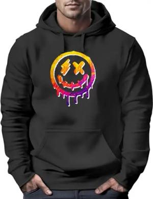 Hoodie Herren Print Drip Face Smile Neon Aufdruck Motiv Kapuzenpullover Techwear Fashion Streetstyle schwarz 4XL