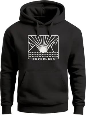 Hoodie Herren Print Outdoor Grafik Line Art Berge Sonne Natur Aufdruck Kapuzen-Pullover Männer Fashion Streetstyle Schwarz L