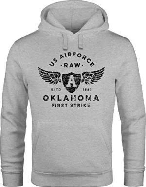 Hoodie Herren Print US Airforce Oklahoma Aviator Kapuzen-Pullover Männer grau XL