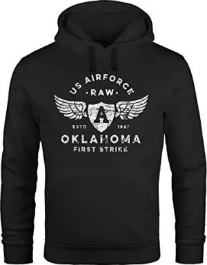 Hoodie Herren Print US Airforce Oklahoma Aviator Kapuzen-Pullover Männer schwarz XL